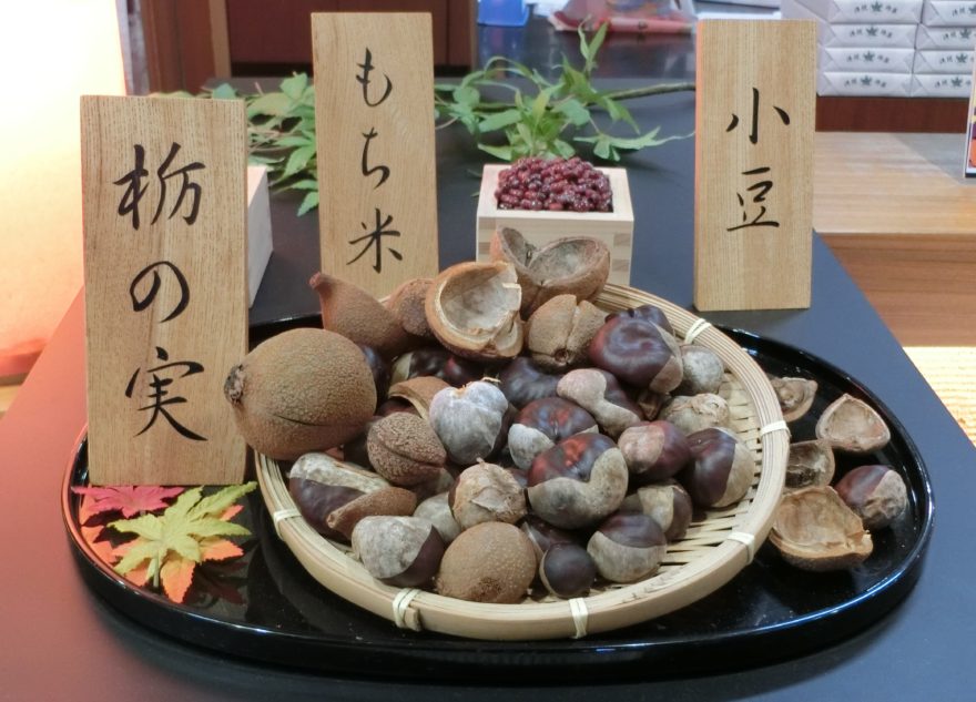 「お菓子の壽城」は、今年で“築城”30周年を迎えるそうです。先日、壽城を訪ねると、屋台風のお店が誕生し、新名物「焼きとち餅」を販売していました。鉄板の上でとち餅を焼いている店長に「4月にお店に来たときには焼きとち餅はなかったと思いますが…。」と尋ねると、「はい。ありませんでした。9月にここ壽城だけで限定販売を始めたのです。今年で30周年になりますので、新商品の開発に取り組んでいたのです。」