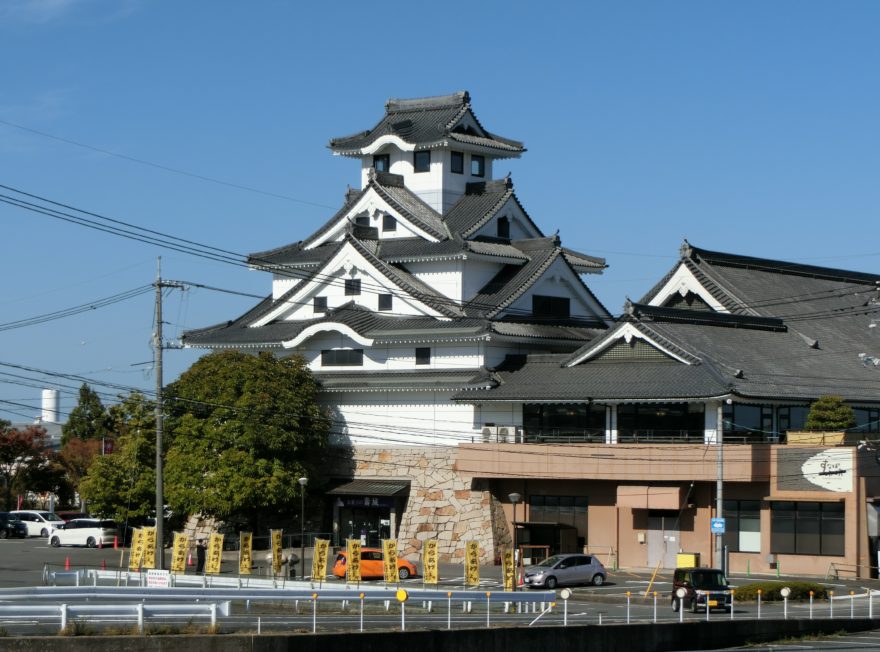 山陰自動車道米子東ICを下りて、田園地帯を北へ向かって車を走らせていると、左側斜め前方にお城が見えてきます。昨年から一躍注目を浴びるようになった最強の城「米子城」ではありません。10月4日のブログで紹介した山陰銘菓「因幡の白うさぎ」を製造販売している(株)壽製菓が、平成5年(1993)に米子城をモデルに“築城”したお菓子のテーマパーク「お菓子の壽城」です。