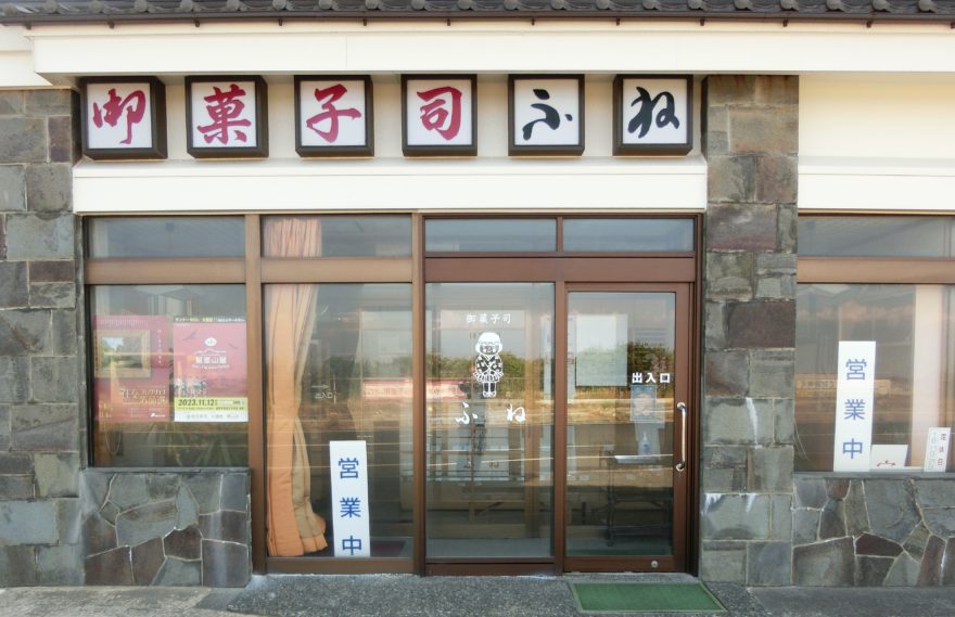 歌詞が異なるものの、貝殻節がこの地域の人々に愛され歌われてきたのは間違いのない事実です。そして、貝殻節の誕生の地の一つである浜村には老舗の和菓子の名店があります。「御菓子司ふね」です。10種類以上の和菓子を作っておられますが、「ふね」と聞いて思い浮かぶのは、「貝がらもなか」です。浜村の地元の人ならともかく、失礼かもしれませんが、お店の名前の「ふね」を知らなくても、「貝がらもなか」は知っているという人の方が鳥取県東部地区には多いのではないでしょうか。