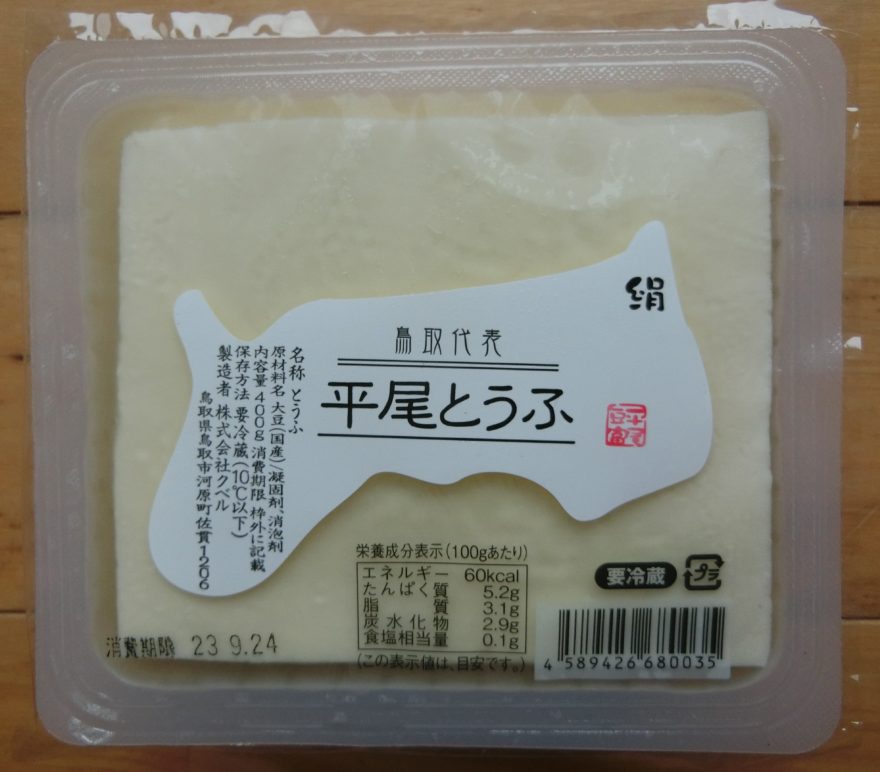 平尾とうふが評判になってから、鳥取市内の大手スーパーの売り場で販売していることがわかりました。早速購入し、夕食時にいただきました。何ともまろやかで、大豆の風味が感じられる優しい味でした。絹も木綿もおぼろも、舌触りが微妙に異なりますが、いずれも美味しい味なのは間違いありません。特に、おぼろは口の中でとろける感じがします。