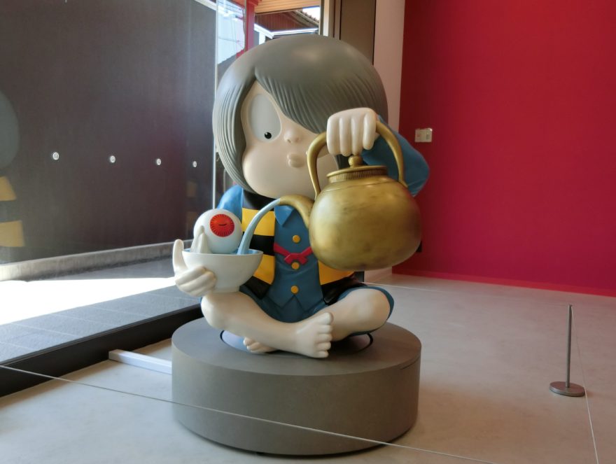 午前9時に梨楽庵を出て、境港駅近くの駐車場に到着したのは午前10時30分でした。やはり1時間半はかかるのです。平日で、時間的にもまだ早かったので観光客は少なかったです。さて、いざ、出発!境港駅前の水木しげるさんのブロンズ像を皮切りに、リニューアルオープンした「水木しげる記念館」までの、およそ800mの商店街をゆっくりと見学しました。