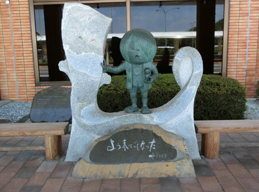 水木しげるロードが一躍全国区となったのは、平成22年(2010年)NHK朝の連続テレビ小説「ゲゲゲの女房」がきっかけでした。「ゲゲゲの女房」は水木しげるさんの妻、武良布枝(むらぬのえ)さんが著した自伝エッセイを原作として制作されました。いきものがかりの主題歌「ありがとう」の大ヒットと相まって、大人気の朝ドラとなり、「水木しげるロード」には観光客が押し寄せるようになったのです。何と平成22年度の境港市への観光客の入り込み数は370万人を突破し、前年度の157万人を大幅に超えたのです。この年の4月に米子空港は知名度アップをねらって愛称化され、「米子鬼太郎空港」と呼ばれるようになりました。
