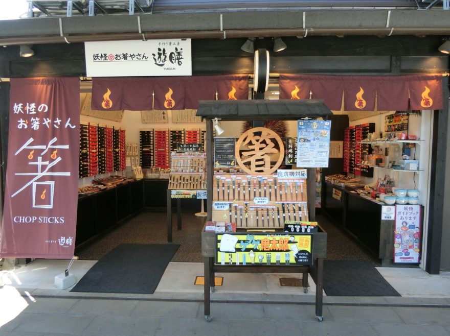 水木しげるロードの車道の両側には、個性豊かなお店が並んでいました。まるで趣向を凝らした「鬼太郎グッズ展示会」のようでした。鬼太郎ファンならお土産に何を買おうか迷ってしまうに違いありません。水木しげる記念館を見学し、境港駅前に戻ったのは正午頃でした。記念館を出たころから観光客の数も増えていました。道行く人々を眺めると、ほぼ100%が家族連れでした。鬼太郎漫画に影響された大人たちと、妖怪キャラに魅せられた子どもたちが、家族の思い出づくりの場所として水木しげるロードを選ぶのは必然なのかもしれません。水木しげるさんが生み出した、誰もが親しみを感じる妖怪キャラには、人を引き付ける絶大な魅力があるのです。
