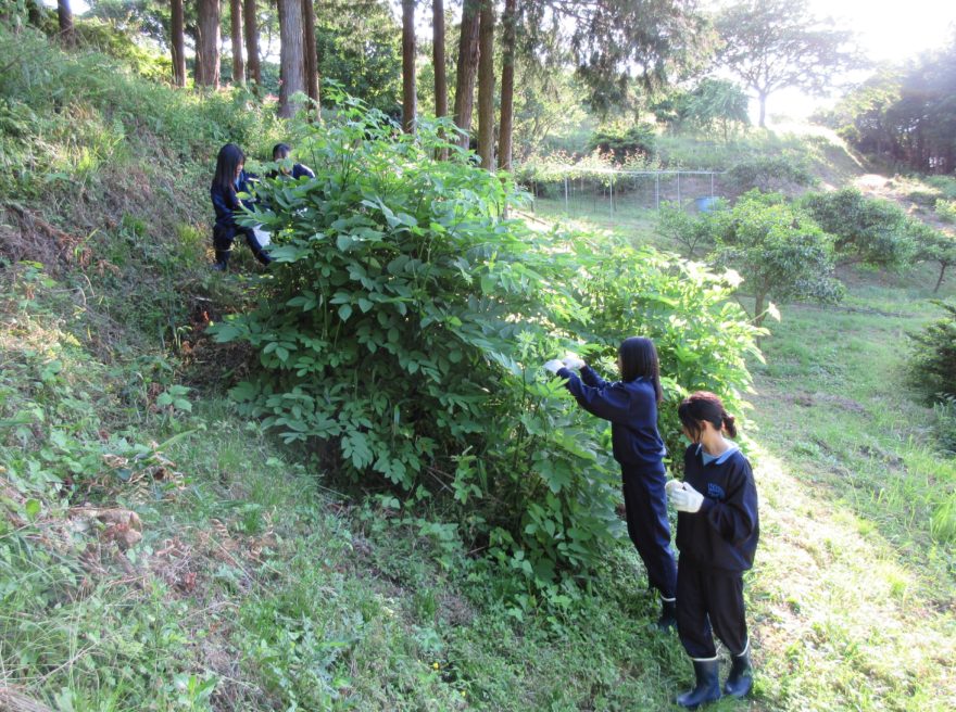 梨楽園で「うど」の葉っぱを収穫したよ
