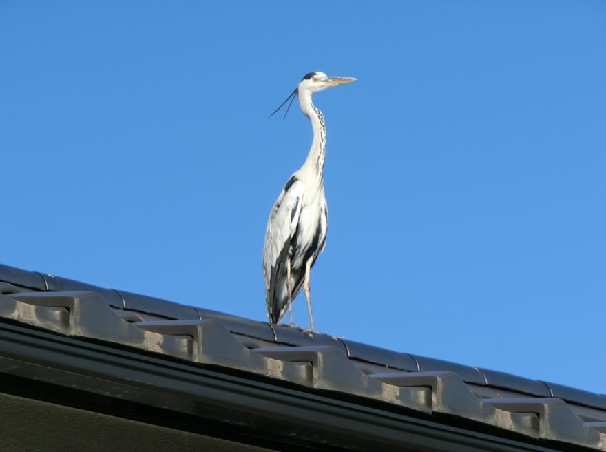 修学旅行生の皆さん、今日、屋根に大きな「アオサギ」がいたよ。何を考え、何を見つめていたのか、10分ぐらい動かなかったよ。鳥取にはまだまだ自然が残っていますよ!