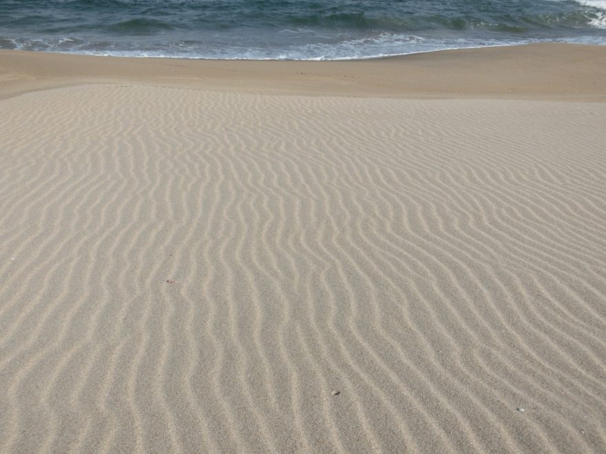 実は、わが家の裏に広がる園の浜も、場所により鳴り砂現象が見られます。素足ではなく、長靴を履いて押し出すように歩くとはっきりと聞き取ることができます。さらには、鳥取砂丘は強い風によって運ばれた砂が形づくる「風紋」が有名ですが、風の強い日に砂浜に出かけてみると、園の浜にもきれいな風紋を見ることができるのです。