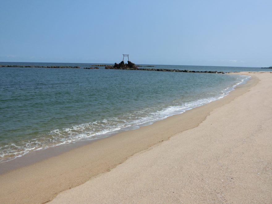 湯梨浜町の西側のハワイ海岸です。ここも夏には海水浴場となり、多くの海水浴客で賑わいます