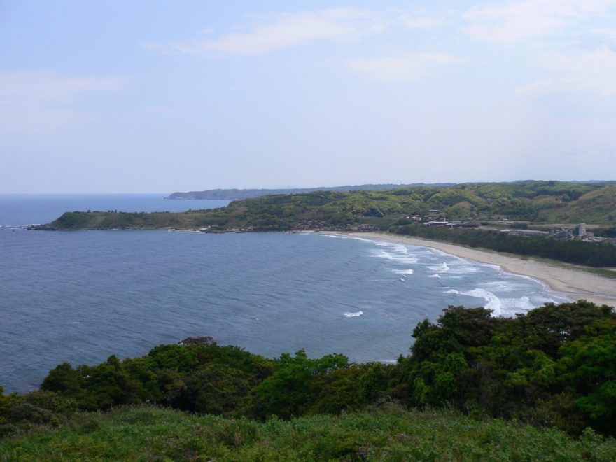 潮風の丘の西側からは鳴り砂の石脇海岸を眺めることができます