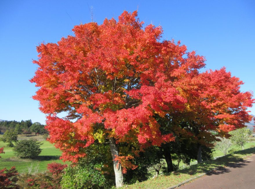 蒜山高原の見事な紅葉です。外は赤、中は黄色、そして、黄緑色もチラホラ