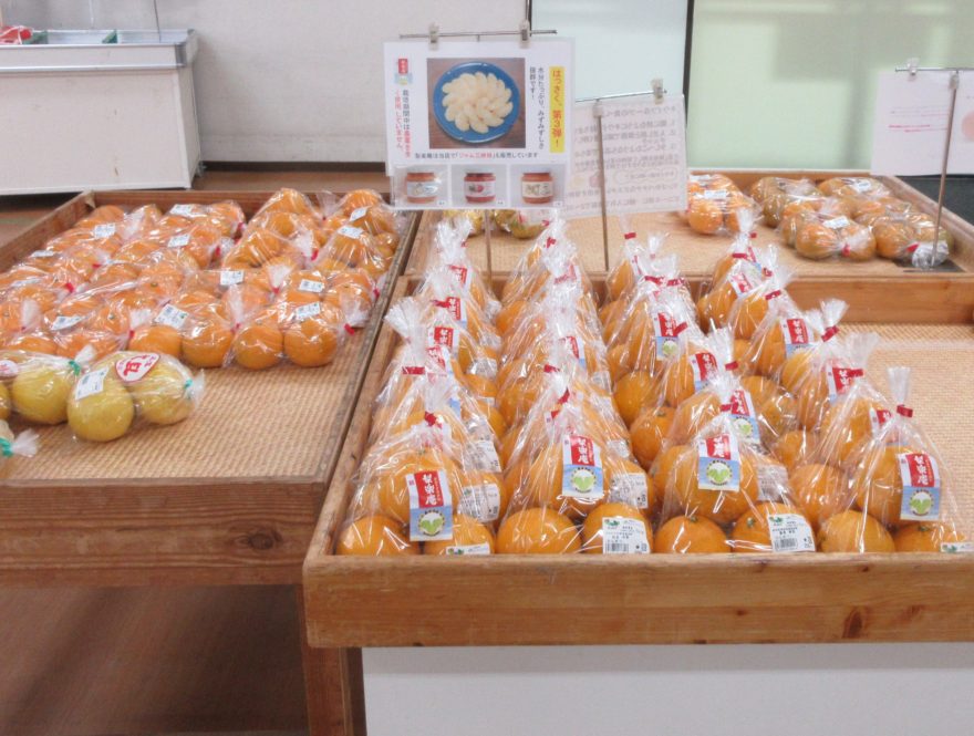 品種は“はっさく”ですが、栽培している土地の諸条件によって微妙に味覚が異なるので、第1弾、第2弾、そして今は、第3弾として3種類を時期をずらして販売しています。写真は第3弾のポップです