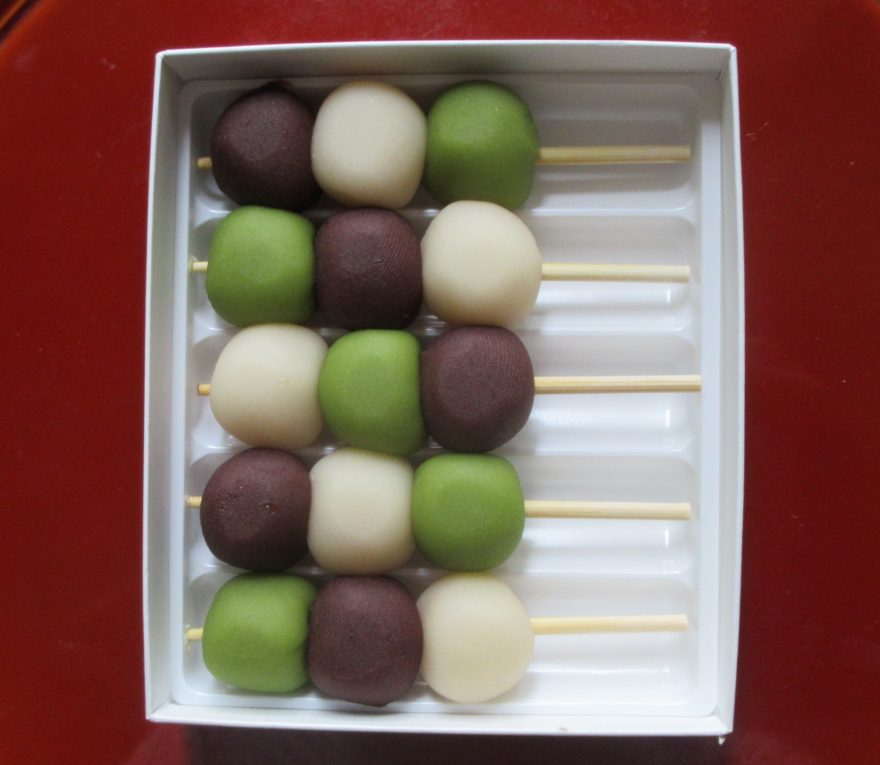だんごをじっと観察して見て下さい。だんごの大きさ、白餡(しろあん)、小豆餡(あずきあん)、抹茶餡(まっちゃあん)の色の組み合わせ、串に刺してあるだんごの順番の入れ替えなど、洗練されたシンプルなデザインだからこそ、素朴で懐かしい昭和の雰囲気が漂って来るのです。