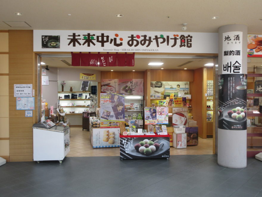 茶色の建物が「エースパック未来中心」です。1,503席の大ホールと310席の小ホールがあります。右隣の建物が「なしっこ館」です