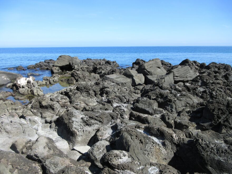 当時の海岸線はもっと奥だったはずです。海に辿り着いてからも膨大な量の溶岩流が海の中へと流れ込んだのでしょうか