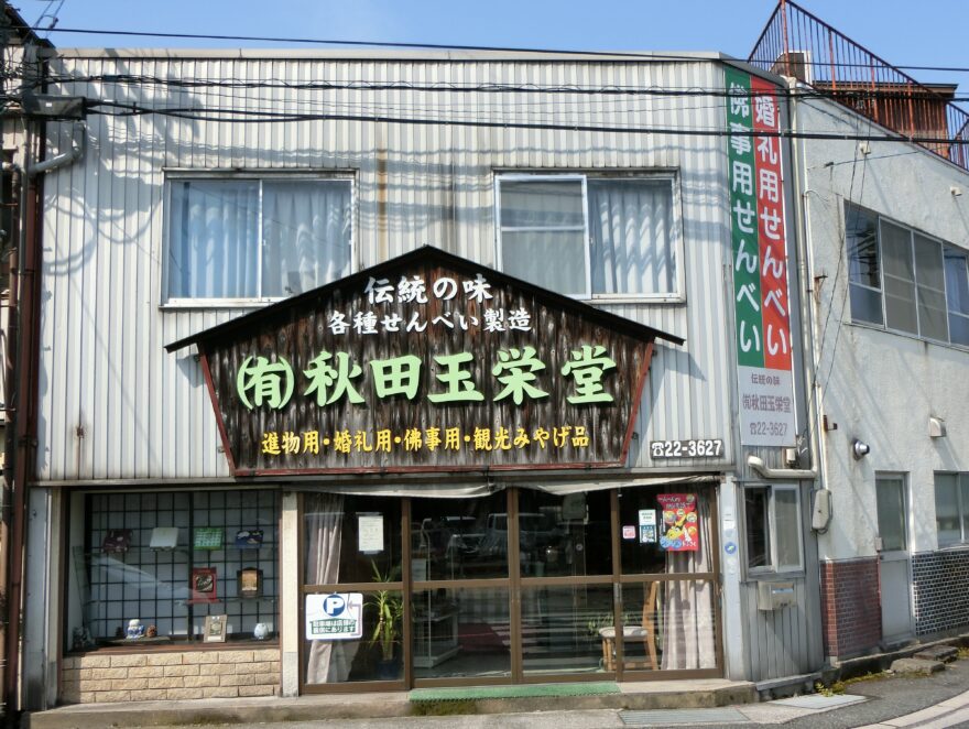 鳥取市吉方町にある創業1926年の「秋田玉栄堂」も生姜せんべいを製造しています。生姜せんべいを作り始めた時期がいつなのか、記録は残っていないそうです。週に一度、約2000枚を焼き上げています。