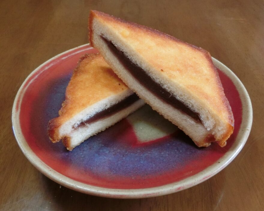 サンドイッチは、オリジナルのイチゴジャムとピーナッツバターが食パンに挟んであります。マイフライは、パンにあんこを挟んで油で揚げた揚げパンです。いずれも超ロングセラー商品です。なぜか懐かしい昭和の味覚を堪能できる逸品、一品?いや、二品です。