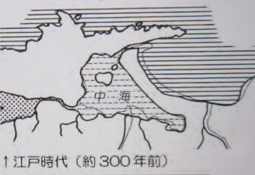 地図をよく見ると、弓ヶ浜半島の付け根の部分に日野川の河口があります。この日野川の上流では、江戸時代の前期頃から「砂鉄」を採るために、「鉄穴(かんな)流し」が行われていて、たくさんの土砂が川に流れ込んでいました。鉄穴(かんな)流しとは、山を切り崩して水路に流し込み、製鉄の原料となる「砂鉄」を採取するやり方のことです。