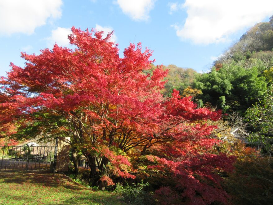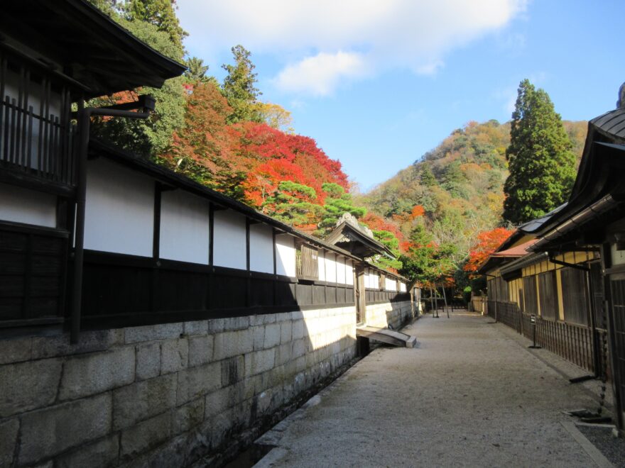 桜井家見学は、たたら製鉄の資料の収集と学びが主目的でしたが、運よく紅葉のベストシーズンと重なって、予想外のプレゼントをいただいた気持ちがして、幸福感に満たされた思い出に残る時間となりました。