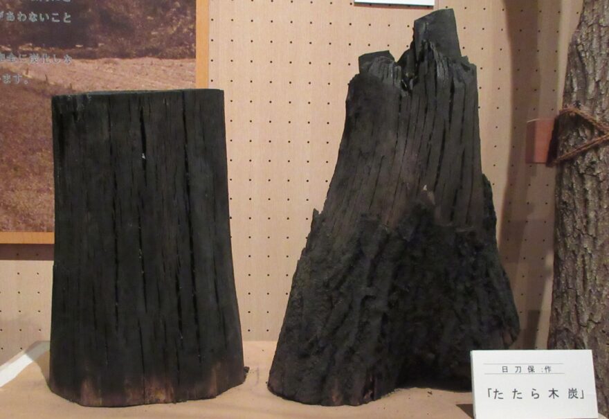 冒頭で紹介しましたが、たたら製鉄では砂鉄を燃焼することで不純物を取り除き、純度の高い鉄をつくるために「木炭」が必要です。しかも木炭は大量に必要なため、たたら鉄山経営者は広大な山林を所有していました。