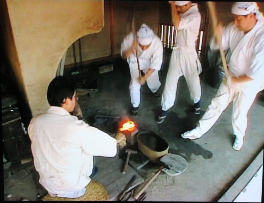 幸いなことに、安来市の「和鋼博物館」には、日本刀の制作工程の説明文と制作過程ごとの日本刀が展示されていました。さらには、ビデオ録画によって日本刀の制作の様子をじっくりと視聴することができました。